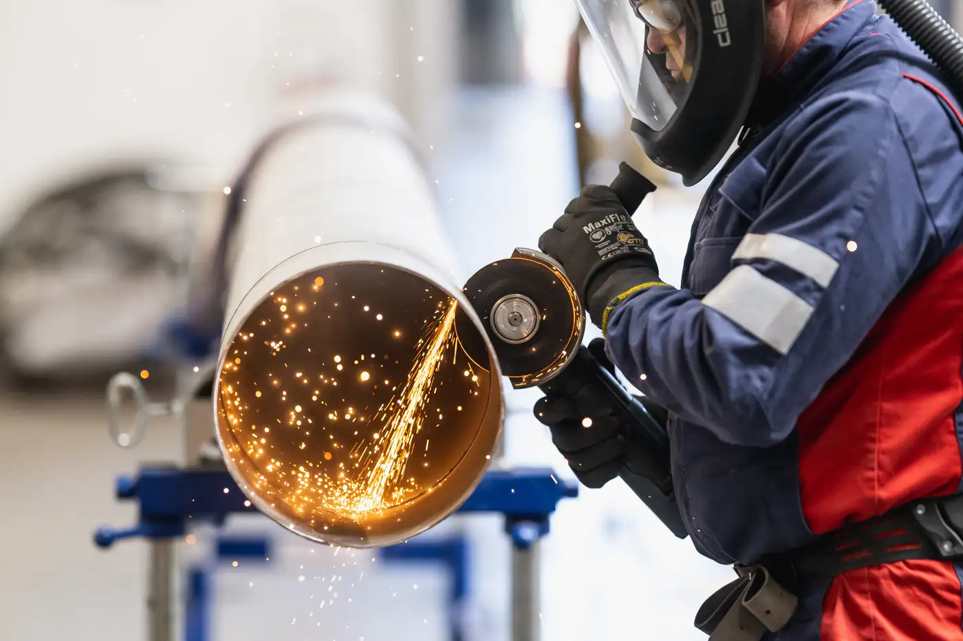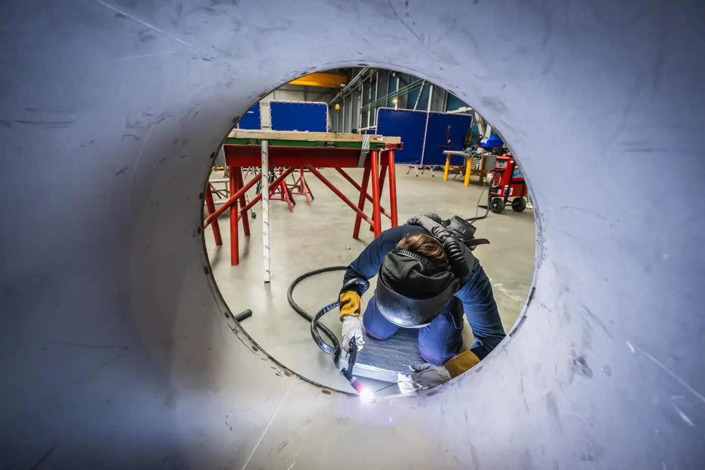 Reportage photo industriel de l’usine Europipe à Bouguenais, spécialisée dans le domaine de la tuyauterie industrielle et filiale du groupe ALTRAD Endel. Photos des infrastructures et des gestes métiers à travers des portraits en situation de travail.